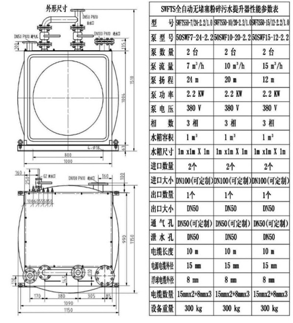 設(shè)備自身包括球閥、無堵塞污水止回閥,用戶管路系統(tǒng)可以不安裝任何閥門組件。